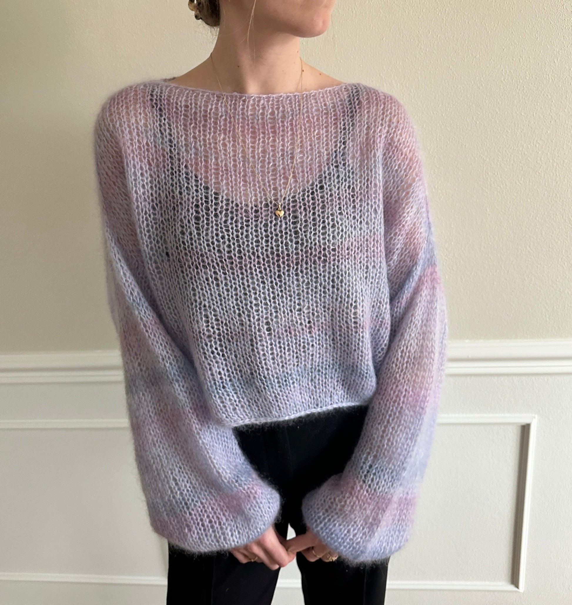 The blouse can be knitted in 8 different sizes, XS (S) M (L) XL (2XL) 3XL (4XL), corresponding to a bust circumference of 75-85 (85-90) 90-95 (95-100) 100-110 (110-120) 120-130 (130-140). The circumference of the sweater for each size is 110 (120) 128 (134) 136 (146) 152 (158) cm and it is designed to have positive ease of 30-40 cm for the smaller sizes and 20-30 cm for the larger sizes, compared to this measurement, so before you choose which size to knit, we recommend that you measure your bust circumference or circumference at the widest area and add 20-40 cm to this measurement to find the best size for you.