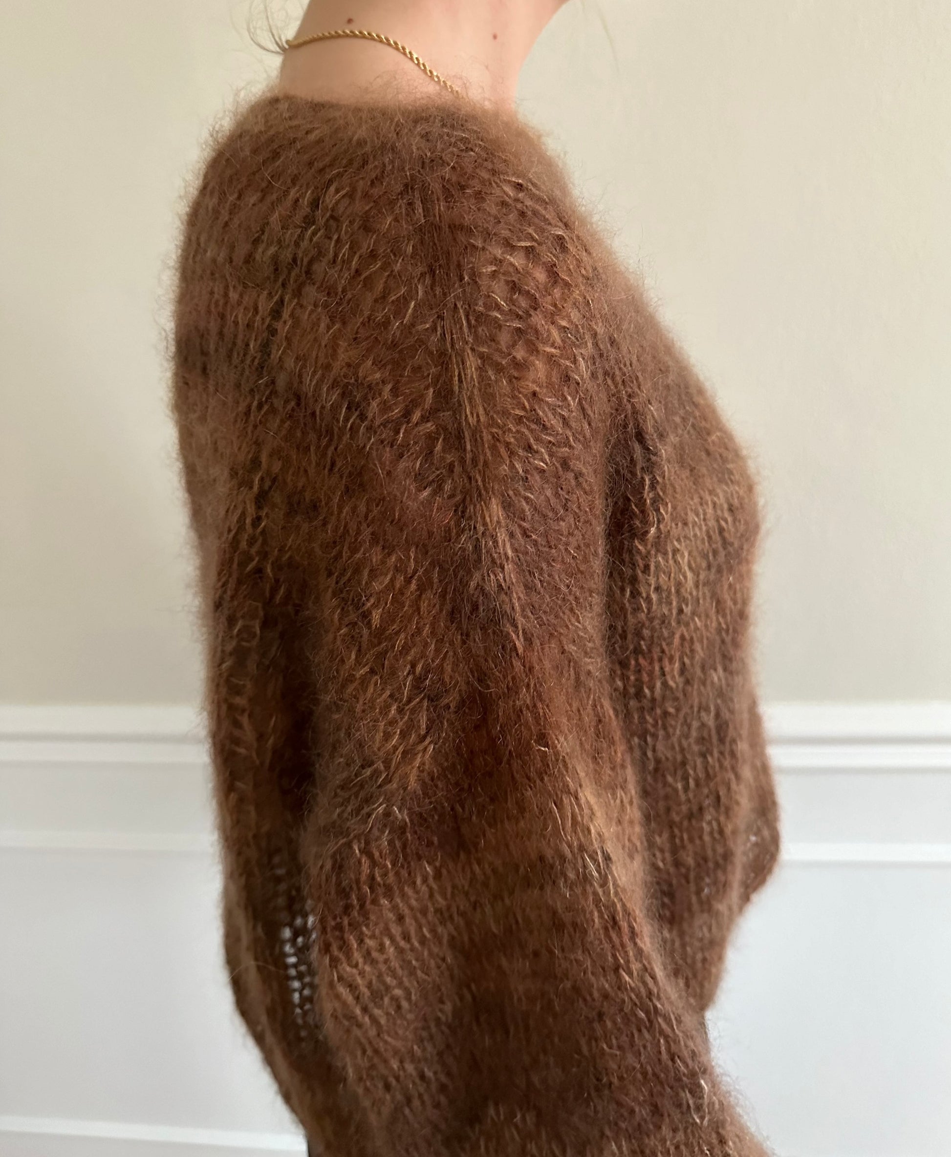 3 strands of silk mohair (25 g = approx. 210m) og 1 strand Fat/chunky mohair (100 g = 200 m).