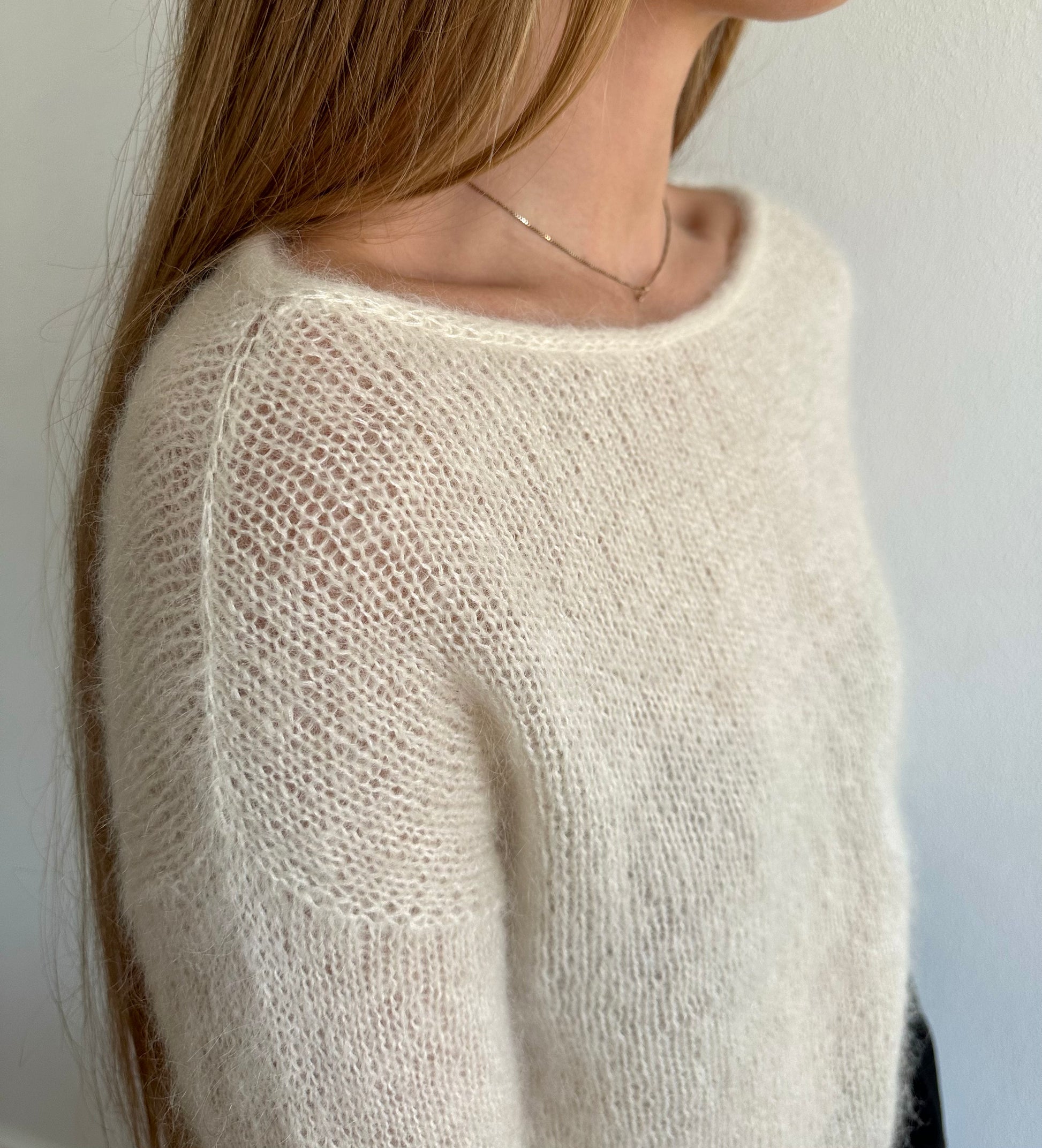 Maskene deles til et for- og bakstykke, som strikkes hver for seg. De samles igjen under ermet og bolen strikkes rundt i glattstrikk. Det avsluttes med en i-cord kant. Deretter samles det masker opp langs halskanten, som også strikkes som en i-cord kant. Deretter plukker en opp masker til ermene, som startes med vendepinne. Deretter strikkes det glattstrikk med, enten økning eller fellinger underveis, avhengig av om det ønskes ballongermer eller vanlige ermer. Ermene avsluttes også med i-cord kant.