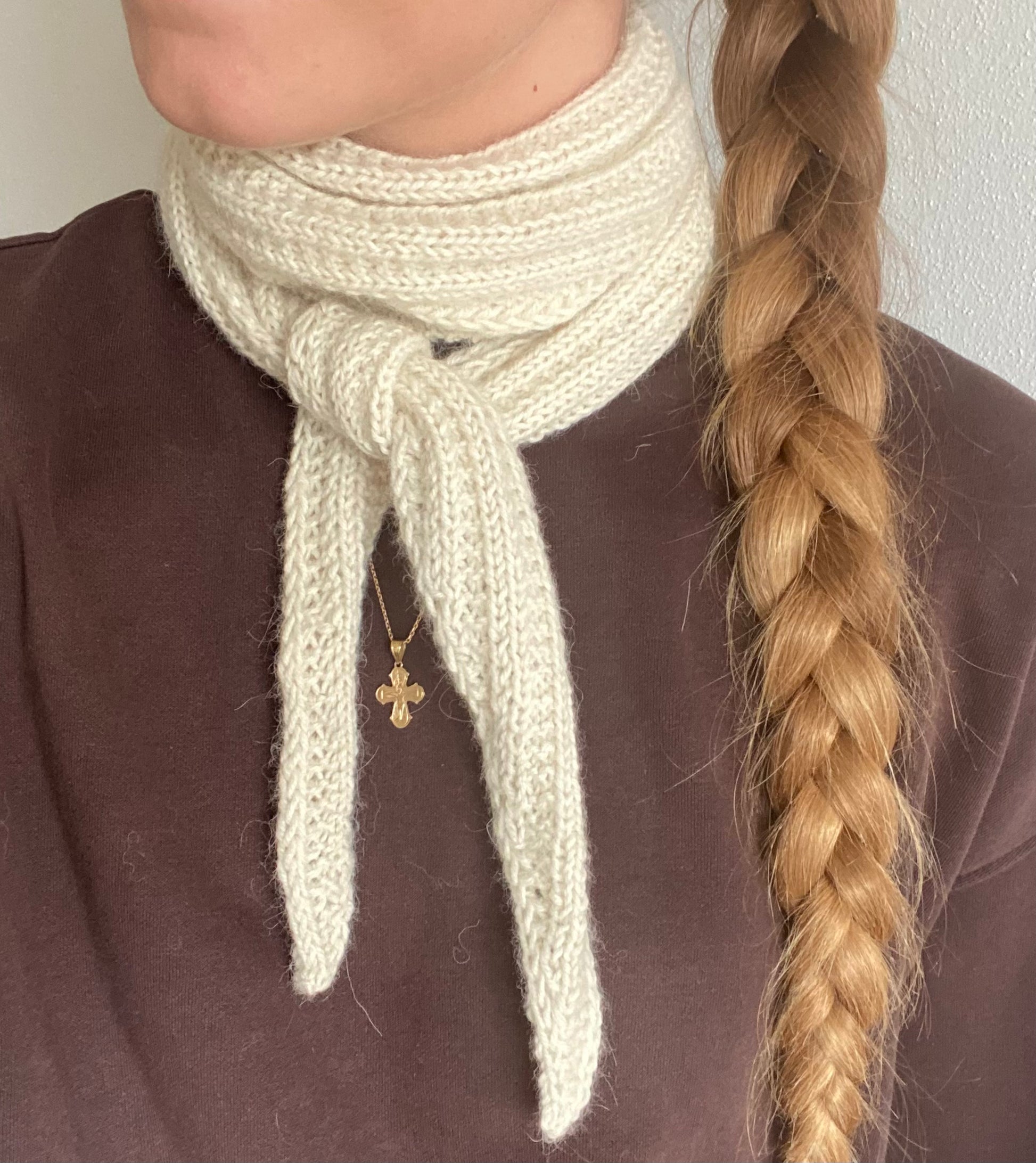 Hvis du ønsker at dit tørklæde skal have de præcise mål angivet i opskriften her, skal fastheden være 22 masker x 26 pinder på 10 x 10 cm i dobbelt perlerib mønster. Denne fasthed får vi på 4 mm pinde.